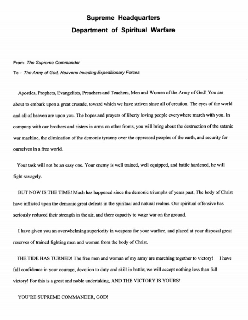Army of God Speech 4Oct 20204 Oct 2020Add a comment I don’t know where this originated, but….TEN-HUT! Share this: Click to share on X (Opens in new window) X Click to share on Facebook (Opens in new window) Facebook Like Loading... Related