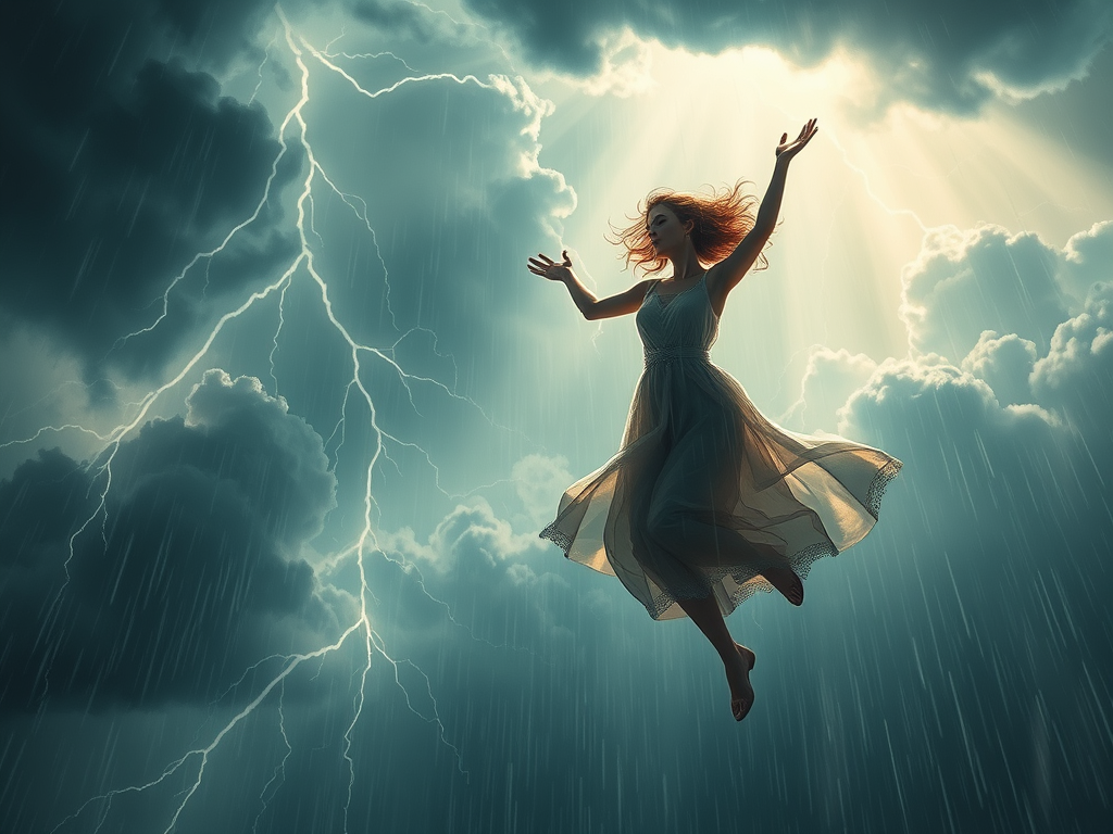 Lightning flashes through the sky like art,